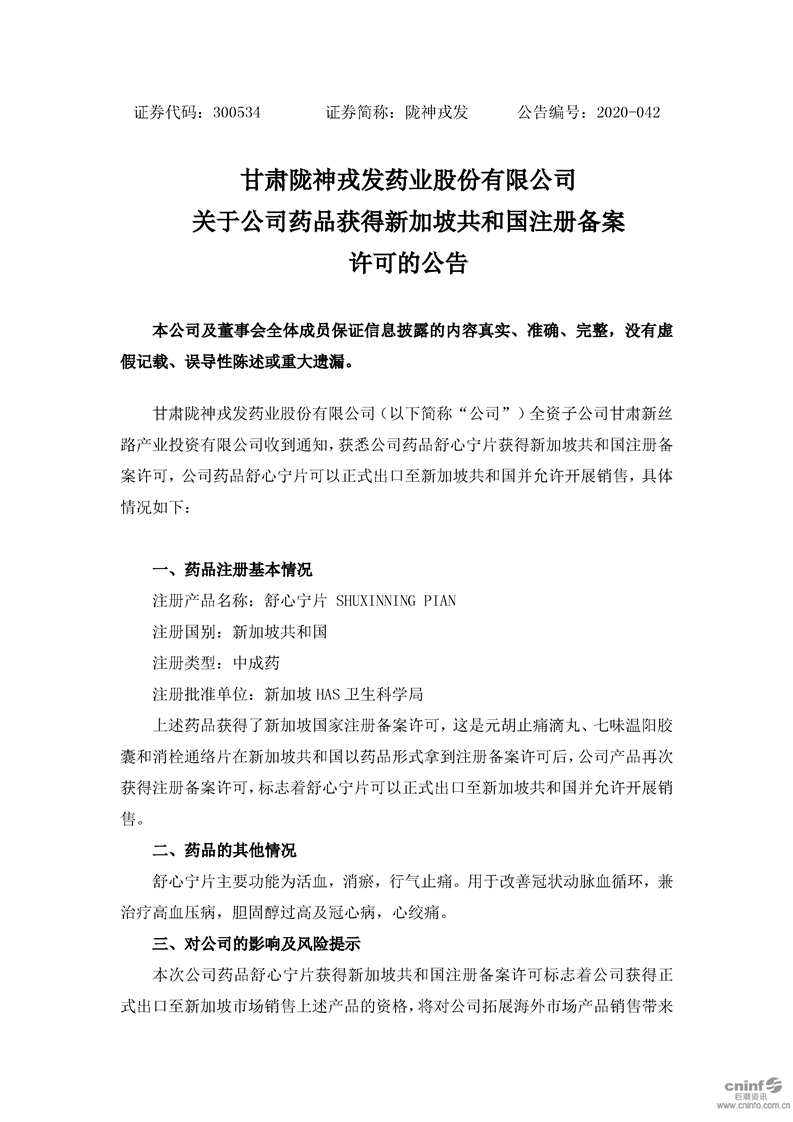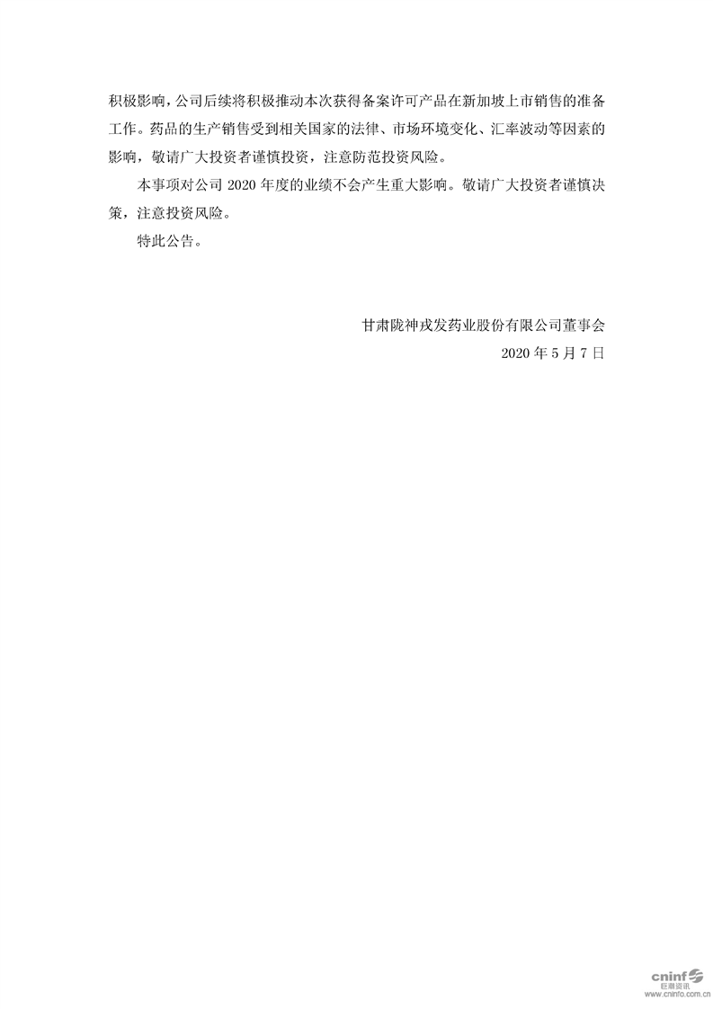 关于公司药品获得新加坡共和国注册备案许可的公告