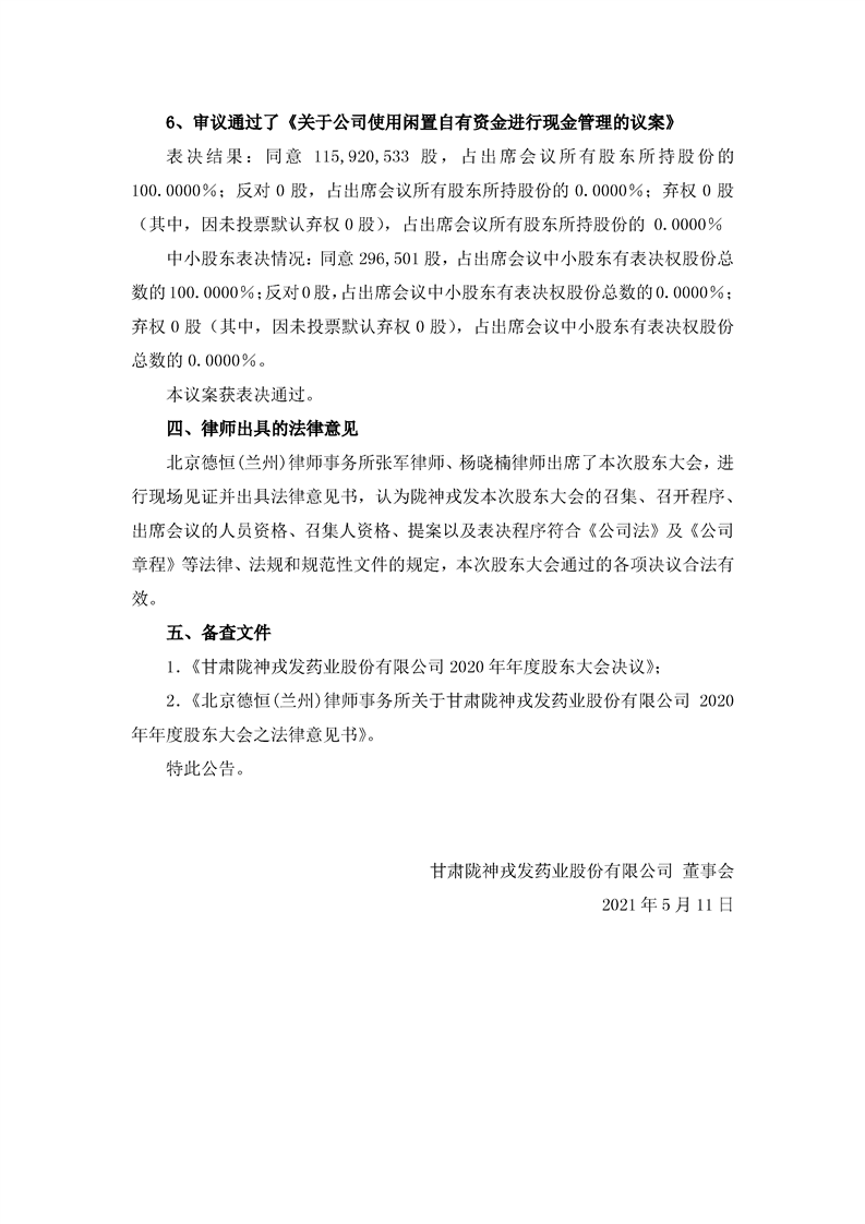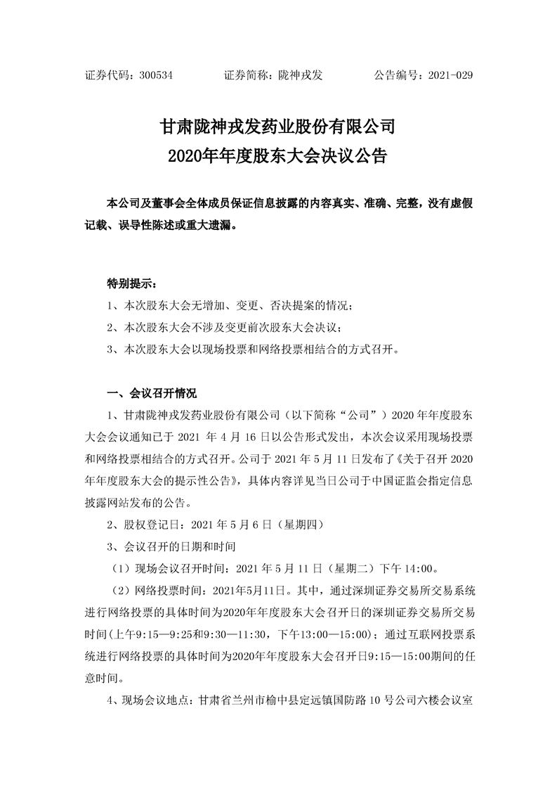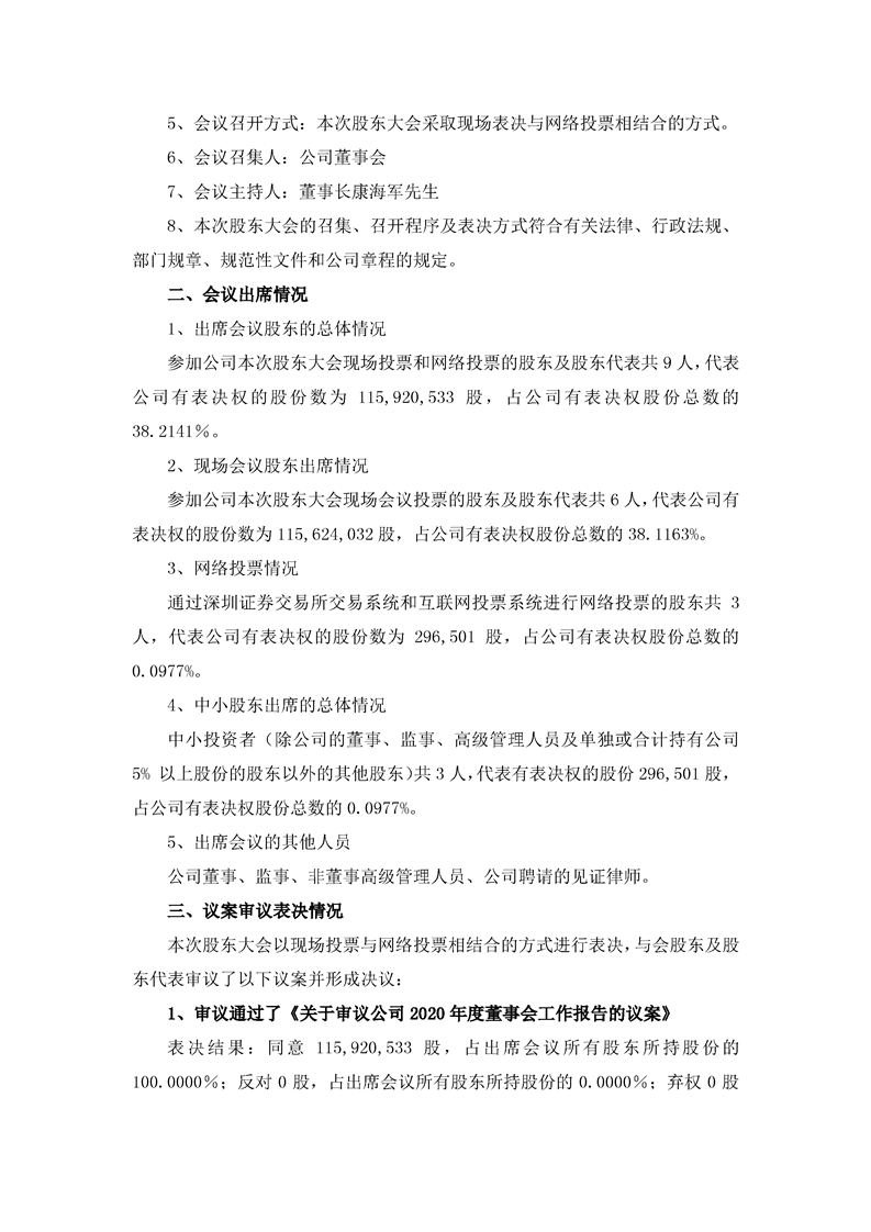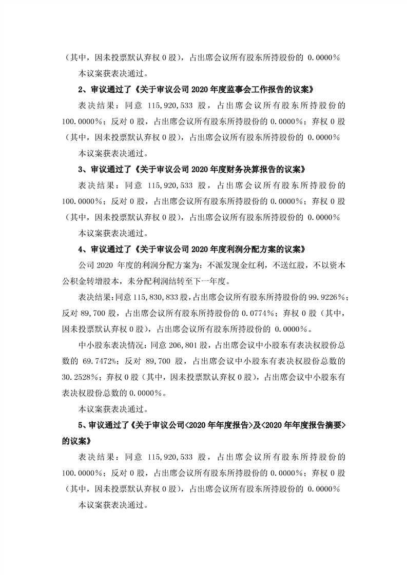 2020年年度股东大会决议公告