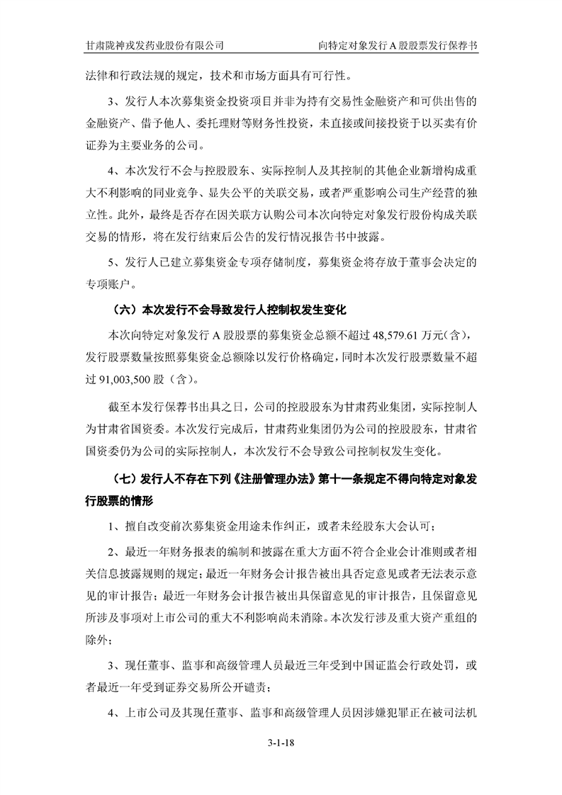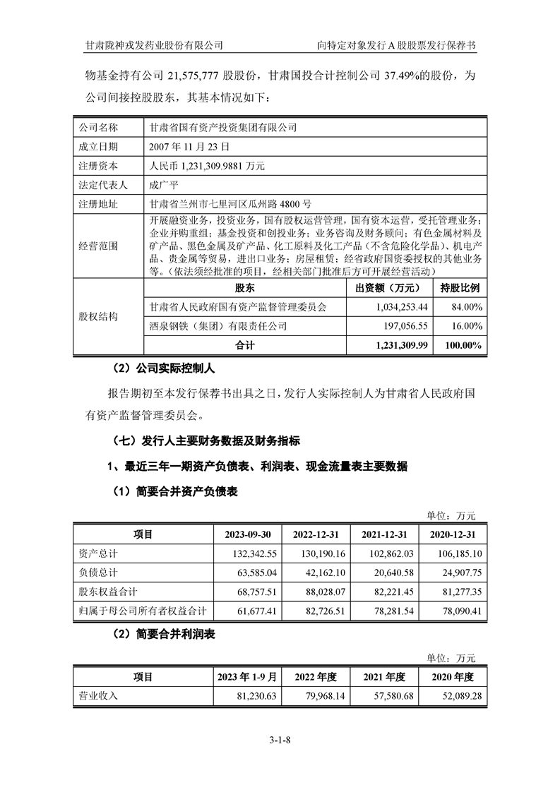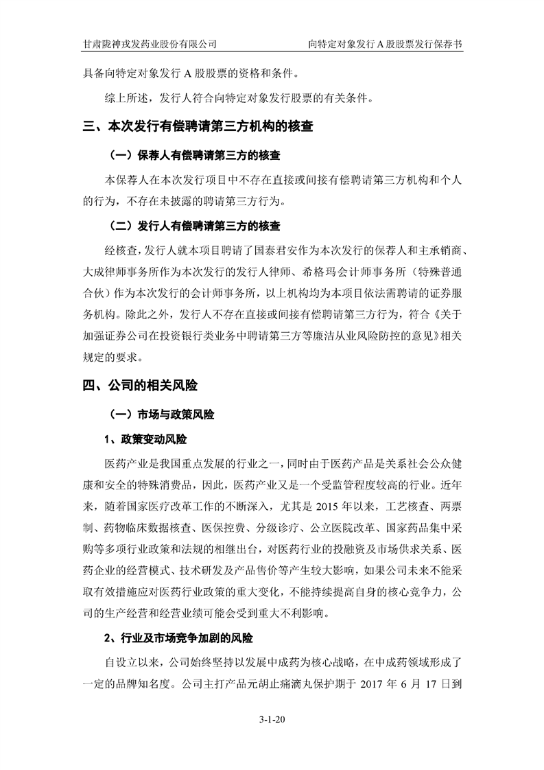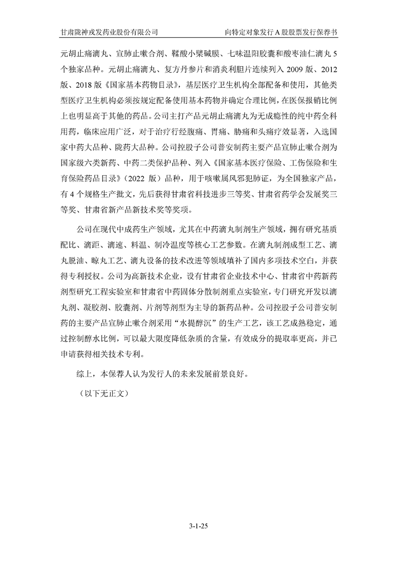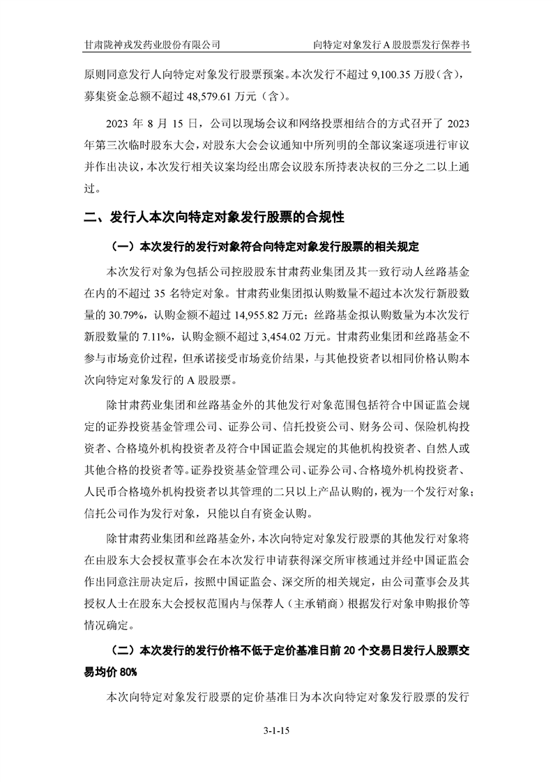 国泰君安证券股份有限公司关于甘肃陇神戎发药业股份有限公司向特定对象发行A股股票之发行保荐书