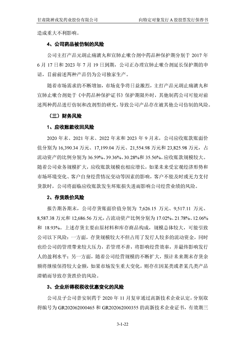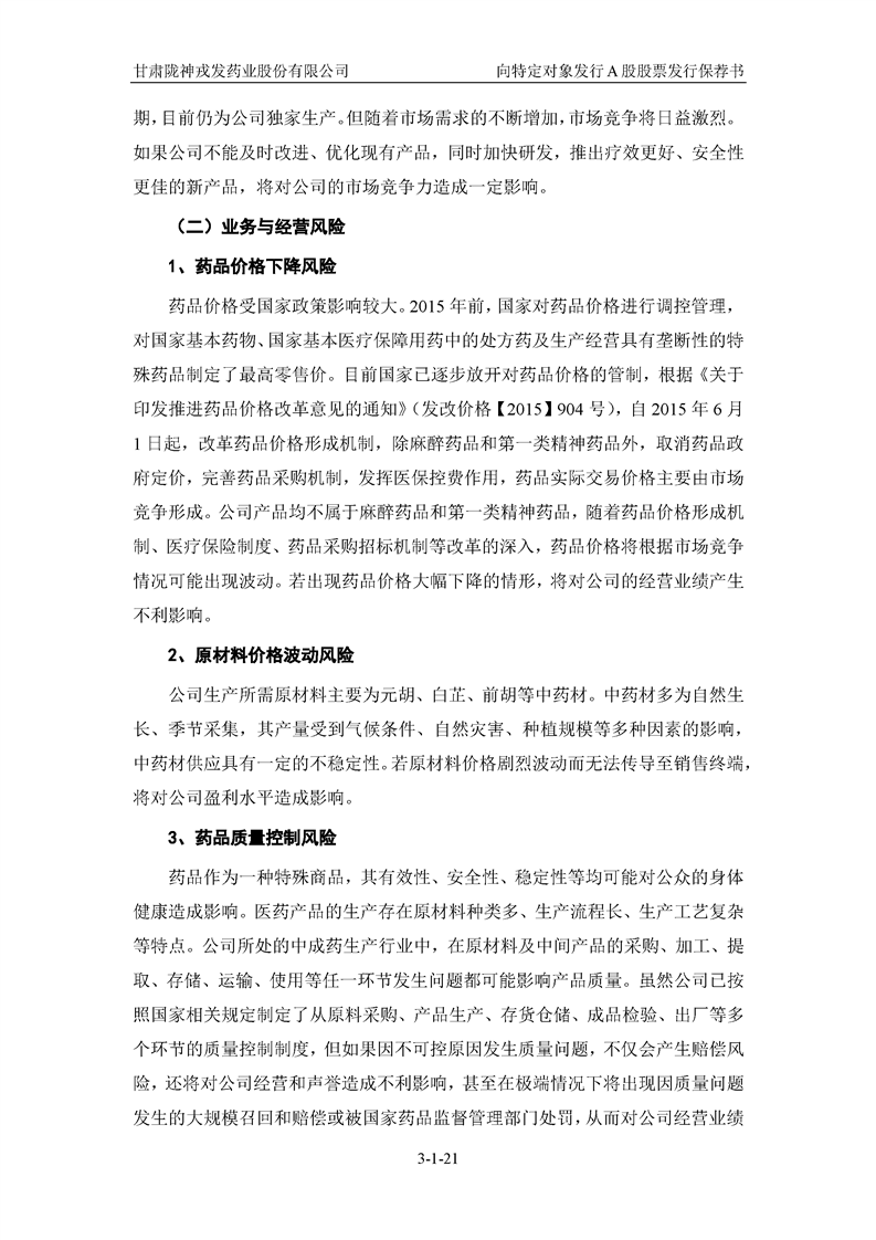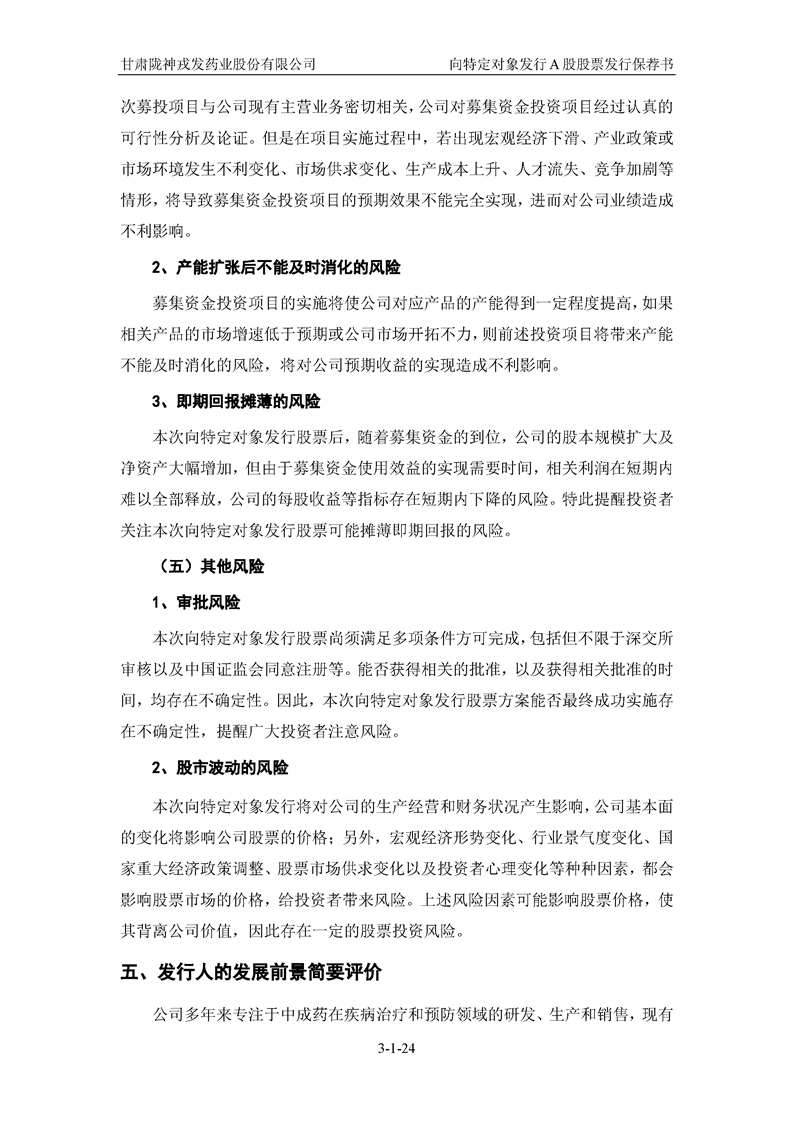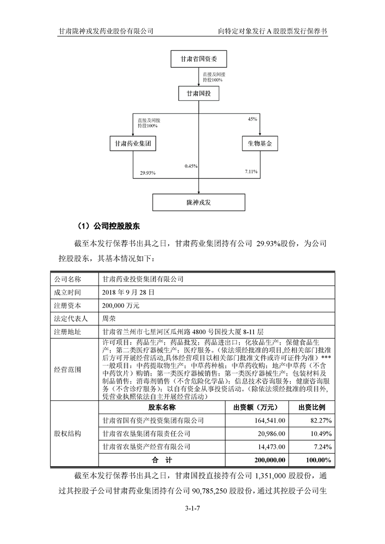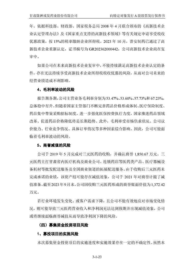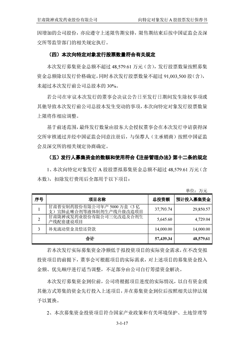 国泰君安证券股份有限公司关于甘肃陇神戎发药业股份有限公司向特定对象发行A股股票之发行保荐书