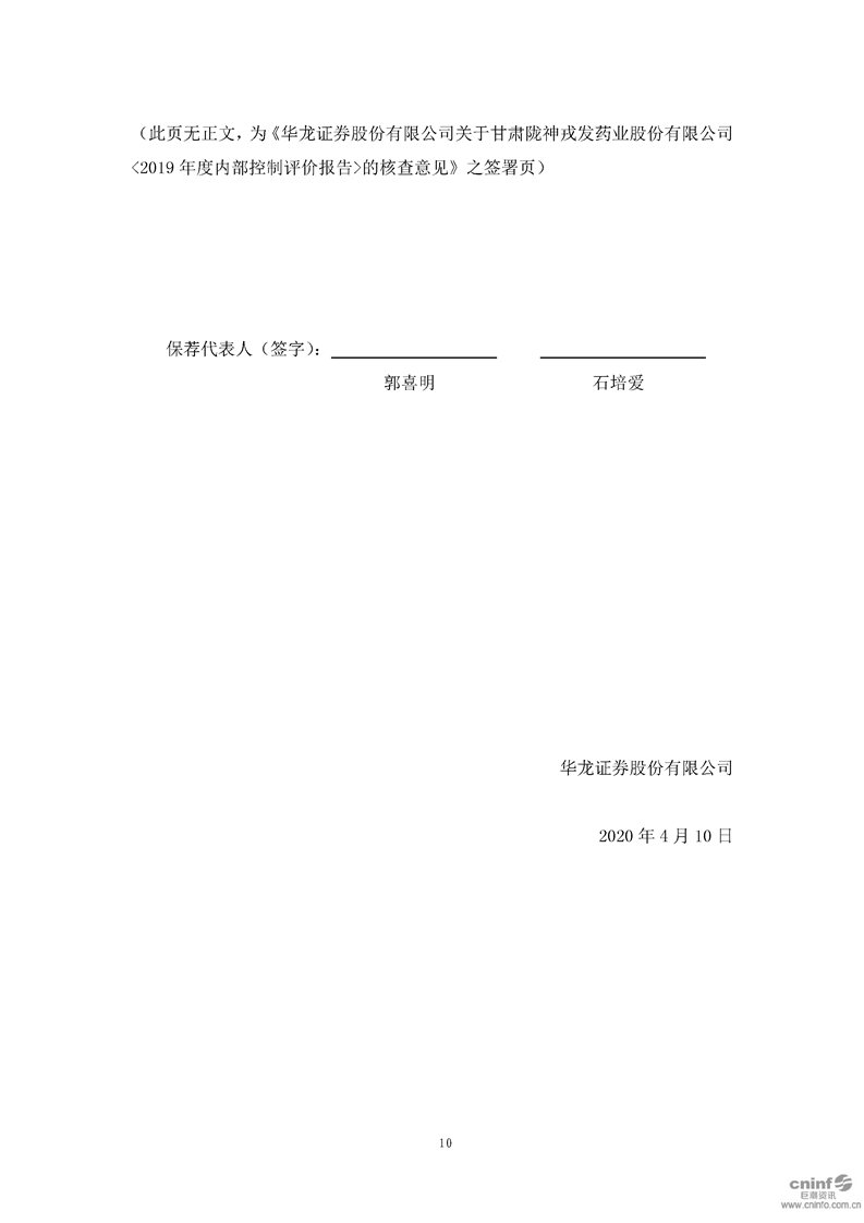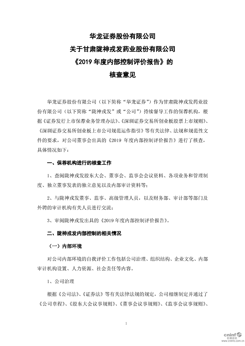 华龙证券股份有限公司关于公司《2019年度内部控制评价报告》的核查意见