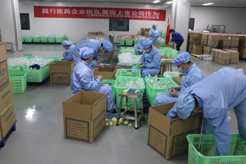 精准施策护航全面复产。为减少人员聚集,陇神戎发严格执行复工人员轮岗及倒班制度,开工以后每天两次体温监测,同时加大对生产区的消杀频次,对人员实行倒班制,白班从100多个职工减少到了51人,中班从30人减少到15人,夜班3人,截止2月29日,生产元胡止痛滴丸10836万丸、复方丹参片800万片、麻杏止咳胶囊100万粒。同时,根据当前疫情防控情况市场需求,结合陇神戎发实际情况,以及陇神戎发未来发展规划等因素,着手变更经营范围并修改《公司章程》,将“口罩、防护服、消毒液、测温仪等生产和销售”纳入陇神戎发经营范围,新增日产能10吨75%乙醇消毒液生产线1条,目前已产75%乙醇消毒液71.6吨,已售44.35吨。