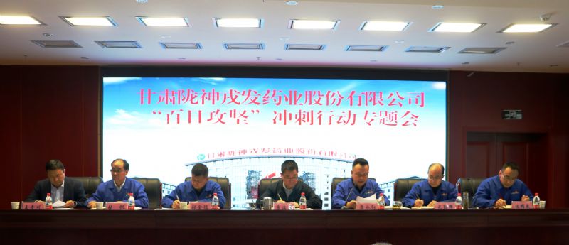 为进一步落实集团公司第29次党委会会议精神,持续推进公司“百日攻坚”冲刺行动各项任务落地见效,确保2021年重点工作、重点任务、重点项目全面完成。2021年10月15日上午,陇神戎发组织公司全体领导班子、班组长以上管理人员、部分职工代表及所属企业主要负责人召开了“百日攻坚”冲刺行动专题工作会议。会议由公司董事、党委书记、总经理康永红主持,甘肃药业集团党委委员、副总经理兼陇神戎发董事长康海军参加会议。