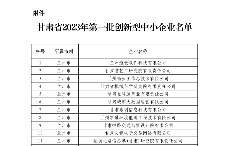 近日,甘肃省工业和信息化厅发布了关于2023年度第一批创新型中小企业名单,陇神戎发成功入选该名单。