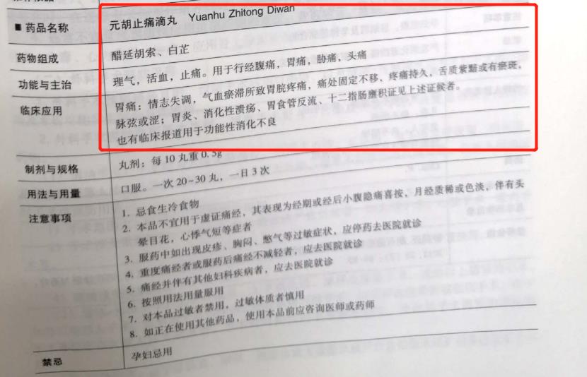 《中成药临床应用指南-消化疾病分册》元胡止痛滴丸收载内容