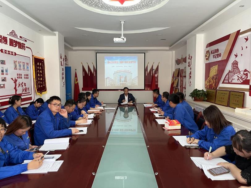 在学习贯彻习近平新时代中国特色社会主义思想主题教育扎实推进之际,5月19日下午,陇神戎发党委书记、董事长宋敏平以《强化责任担当 提振干事创业精气神》为题,为陇神戎发生产第一、第二党支部党员干部上了一堂生动党课。