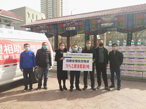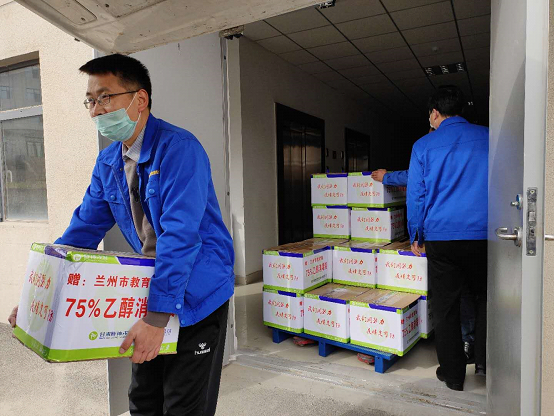 甘肃陇神戎发药业股份有限公司向兰州市教育局捐赠75%乙醇消毒液2吨