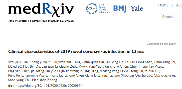 2020-02-09日钟南山院士团队在medRxiv在线发表了目前为止,有关新型冠状病毒感染最大样本量的临床研究,分析了来自全国31个省/直辖市的522家医院共计1099例新型冠状病毒感染患者的临床特征。公共卫生信息编辑部将主要研究结果总结分享,为临床医师诊治新型冠状病毒感染提供参考。