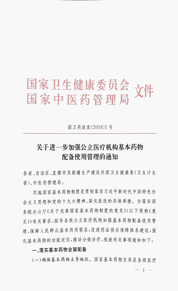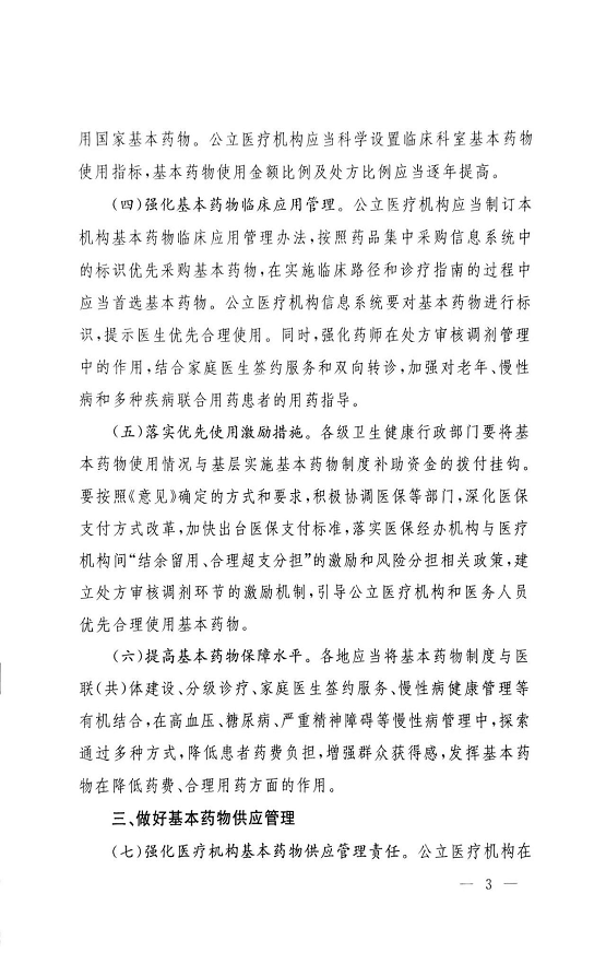 国家卫健委、国家中药局:《关于进一步加强公立医疗机构基本药物配备使用管理的通知》