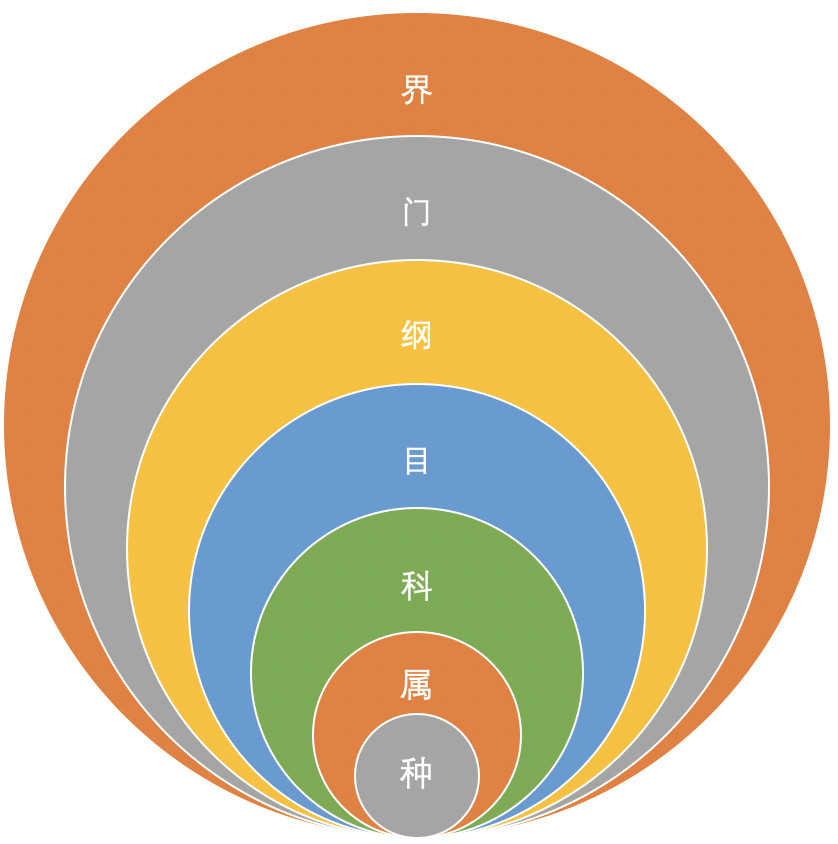 一般在生物学上,按照阶元系统进行分类,通常包括七个主要级别:界、门、纲、目、科、属、种。种是基本单元。从界到种,范围逐步缩小。