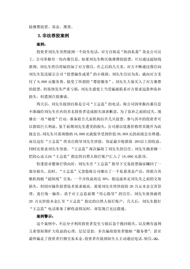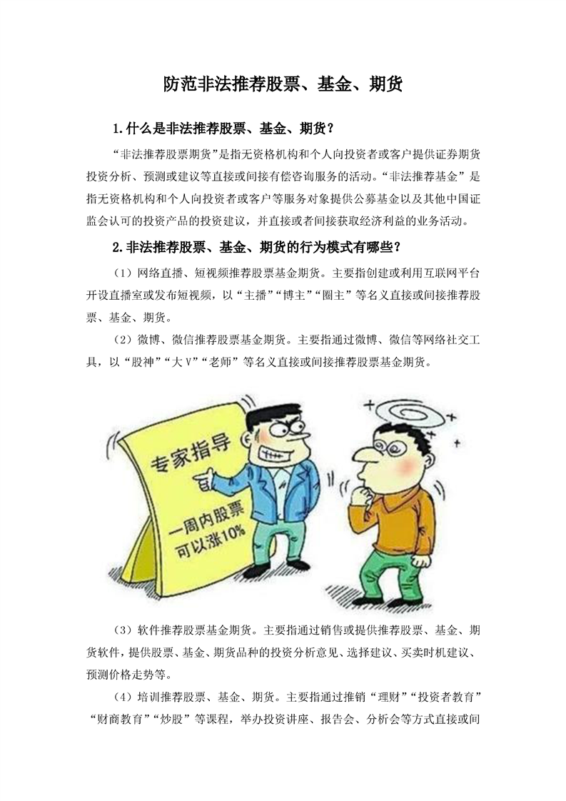 防范非法推荐股票、基金、期货