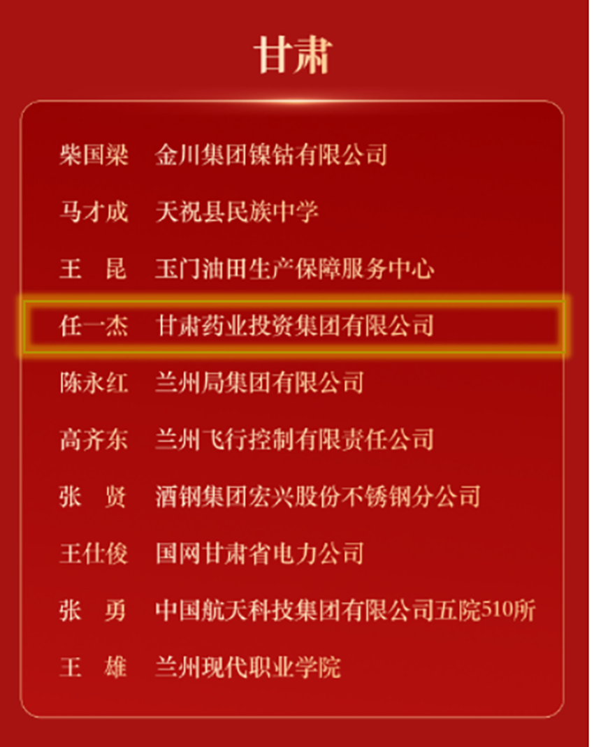 喜报| 甘肃药业集团任一杰荣登2025年“劳模助企行”表扬名单